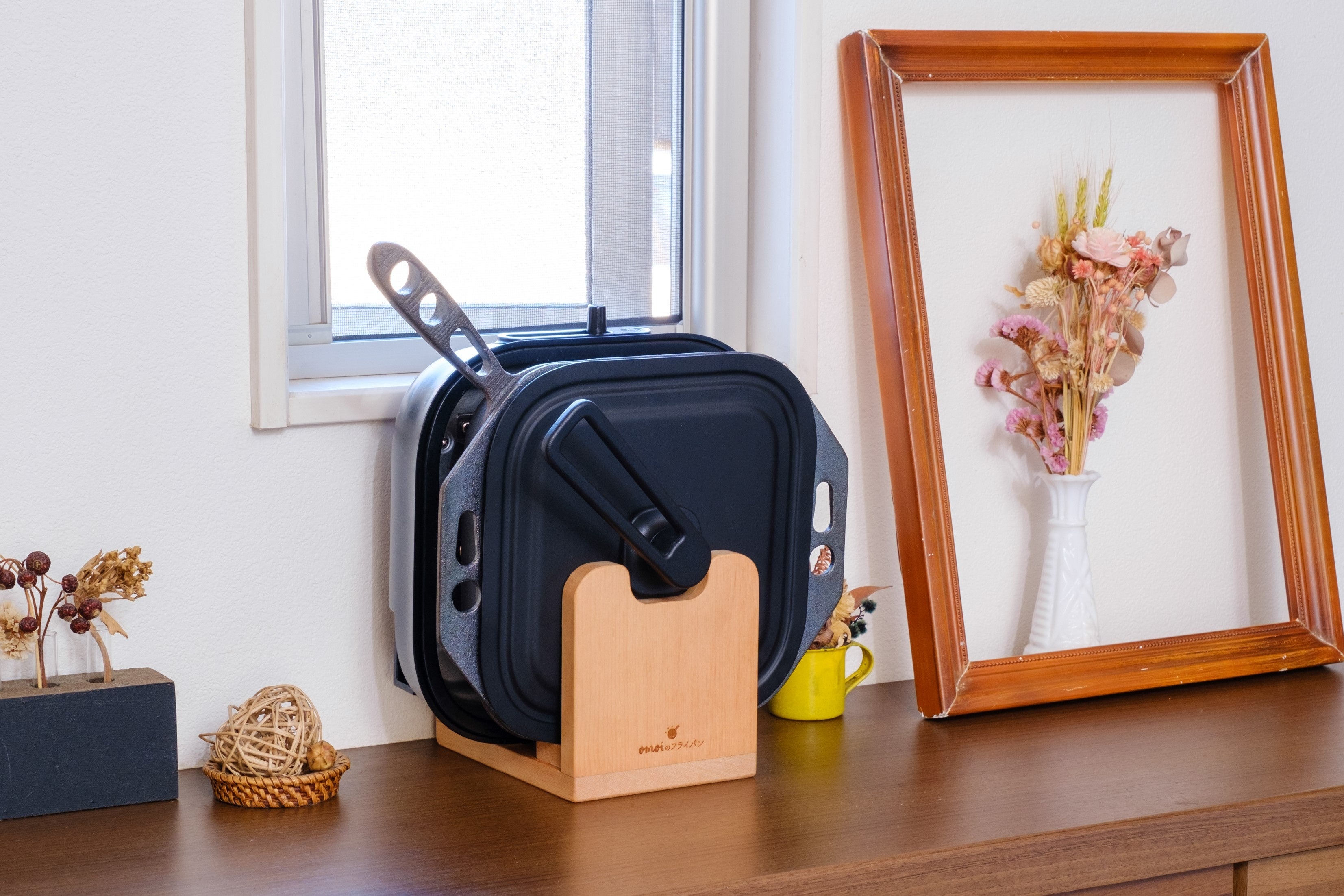 電気卓上コンロはドウシシャの立つフライパン「sutto」で採用しているリブを応用することで縦置きで収納可能です。「出し入れが億劫」「収納の場所をとる」という悩みを解消します。使いたいときにパッと置いてすぐ使えます。