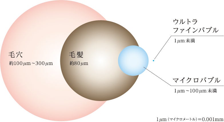 ウルトラファインバブルが毛穴の奥まで入り込んで汚れを取りのぞき、マイクロバブルが毛穴につまった大きな汚れを浮かせて取りのぞきます。