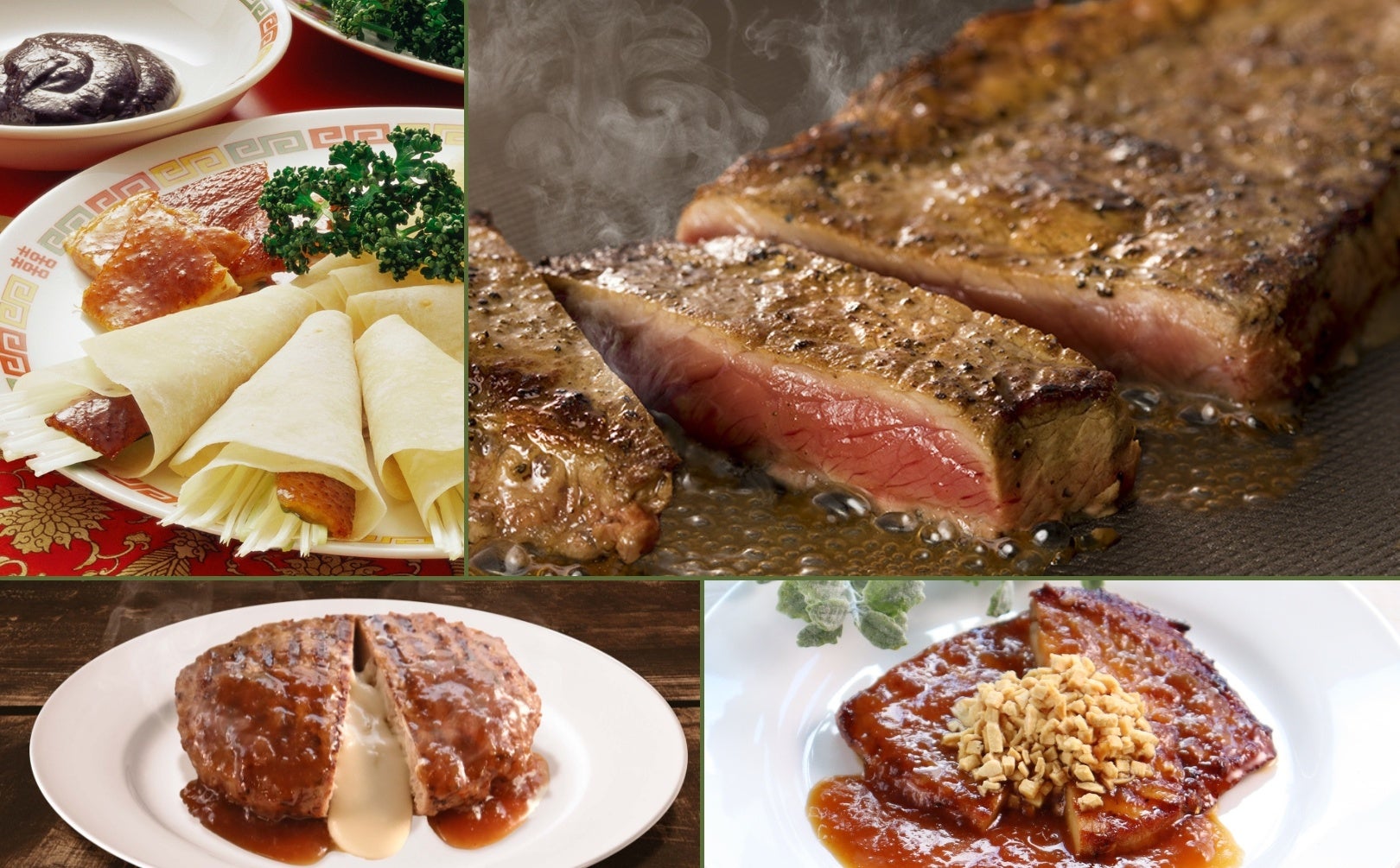 更に、プレミアムコースでは、さっぱりとした美味しさと、噛みしめるたびに肉の香りと強い旨味が口いっぱいに広がる『牛赤身ログステーキ』や、肉厚でジューシーな『北京ダック』も加わり、贅沢三昧!肉三昧!なラインナップをお楽しみいただけます!