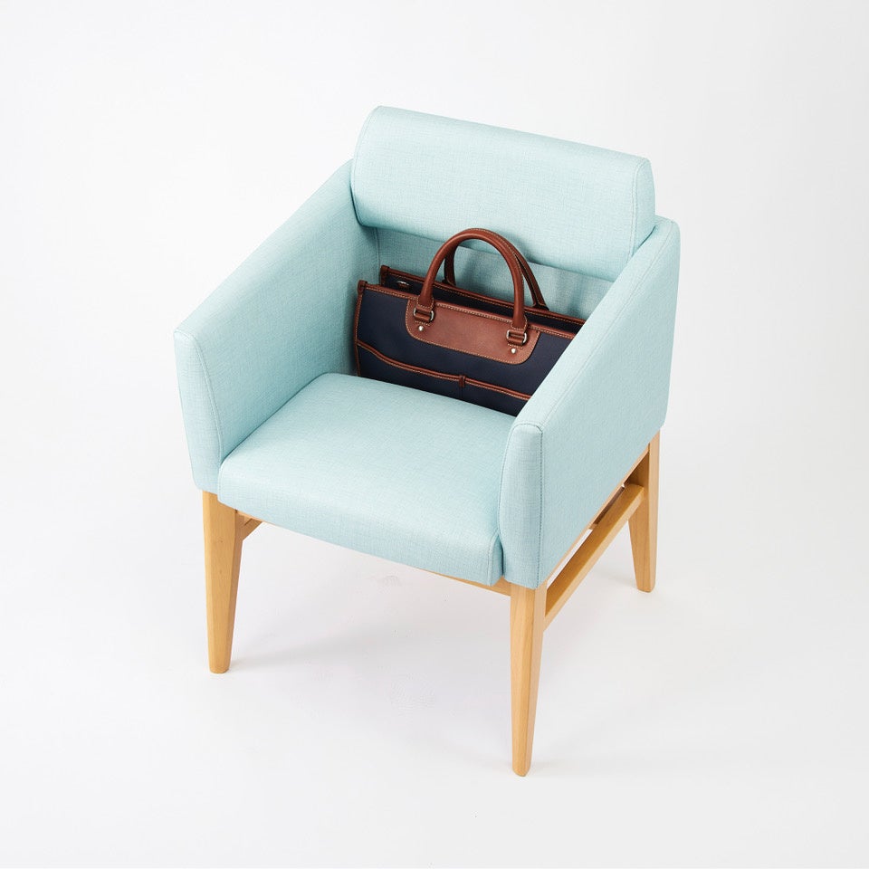 椅子に荷物を置ける収納スペースがついた椅子です。 パーソナルスペースの確保と防犯面で安心安全を両立した椅子です。