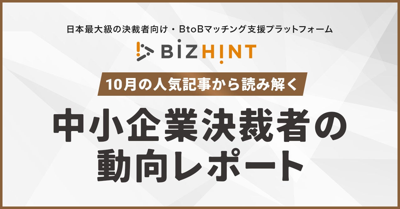 Visionalグループの株式会社ビズヒント(所在地:東京都渋谷区/代表取締役社長:関 哲)が運営する、生産性向上・組織強化・DXなどをテーマに決裁者向けのBtoBマーケティングを支援するプラットフォーム「BizHint(ビズヒント)」(https://bizhint.jp/以下、BizHint)は、2022年10月における人気記事ランキング(※1)から、企業の決裁者が今