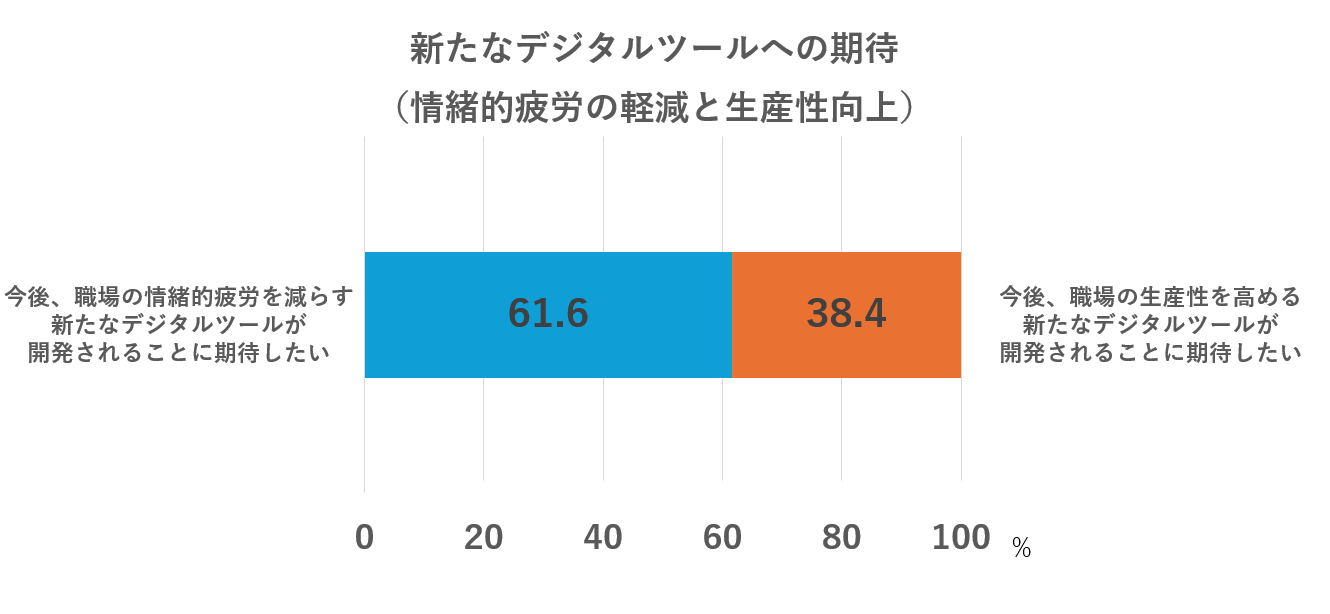 5. 新たなデジタルツールには、生産性向上(38.4%)より情緒的疲労を減らすこと(61.6%)が期待されている