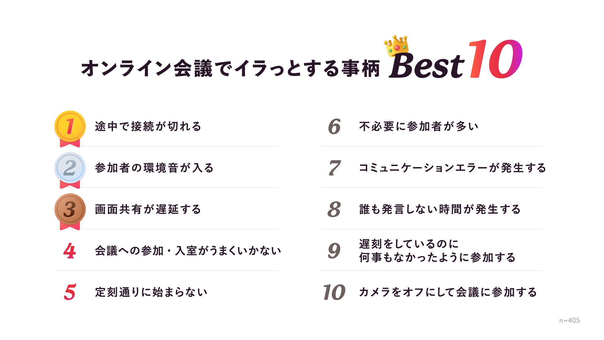 ◾️オンライン会議でイラっとすること(n=405、複数回答)