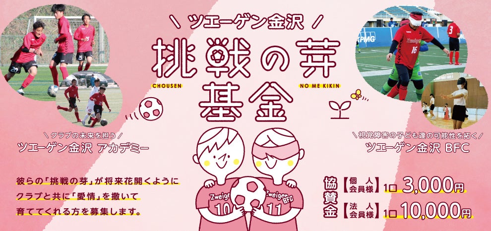 ツエーゲン金沢アカデミー、およびブラインドサッカーチーム「ツエーゲン金沢BFC」の活動をサポートすることを目的としています。