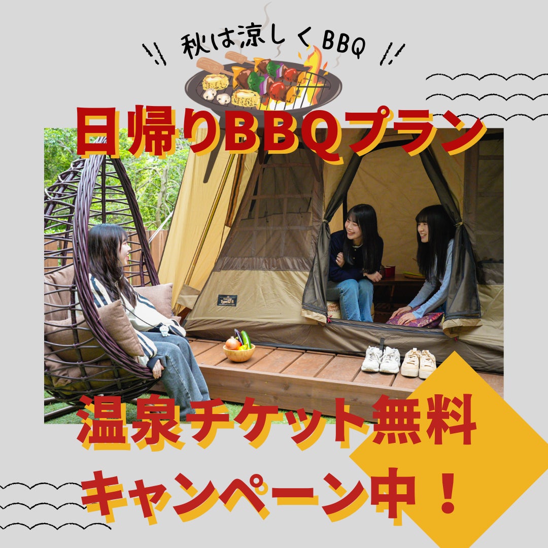 ホームページより日帰りBBQをご予約いただきましたお客様に「しそうよい温泉」の無料チケットを贈呈いたします。