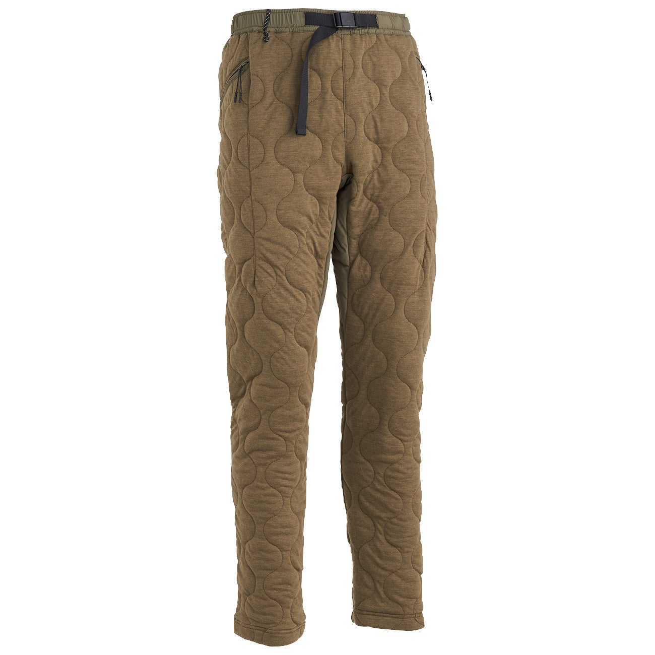 リサイクルポリエステルを使用した、S型のキルティングを施したパンツ。両サイドにはジッパー付ポケット、後ろには座っても中身が干渉しにくい横長ジッパー付ポケットがあり、スマートフォンやハイキングの際の行動食を入れるのにも便利です。ウェービングベルト付き。