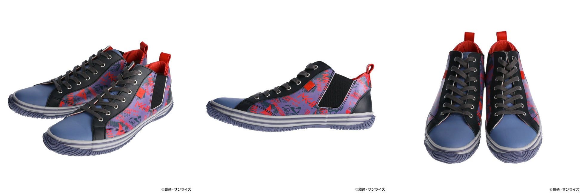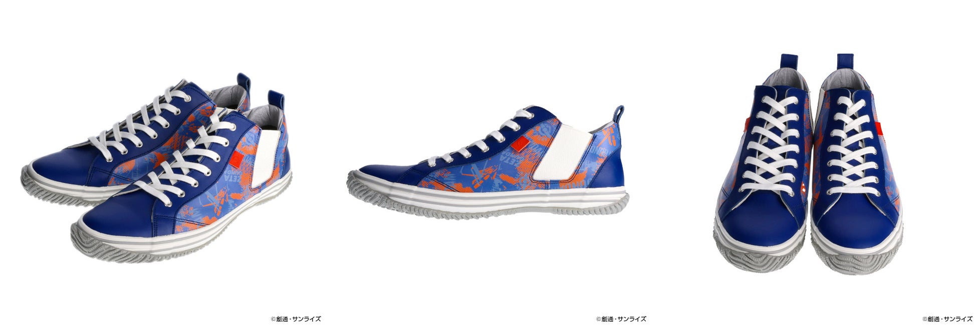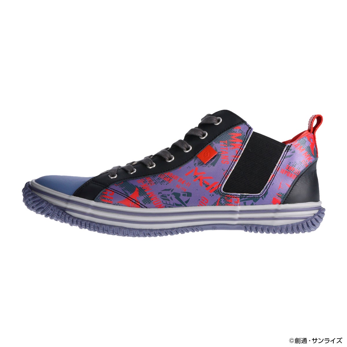 開発・生産を一貫して国内で行い、独自製法 (バルカナイズ製法)を用いた純国産スニーカーブランド「SPINGLE MOVE(スピングルムーヴ)」と『機動戦士Zガンダム』のコラボレーションによるスニーカーコレクションです。アッパーに牛スムーズレザー、サイドゴアを使用したミッドカットモデルを採用。全体のカラーリングはモビルスーツをモチーフにし、サイドには型式・所属部隊マークを総柄でデザイン。