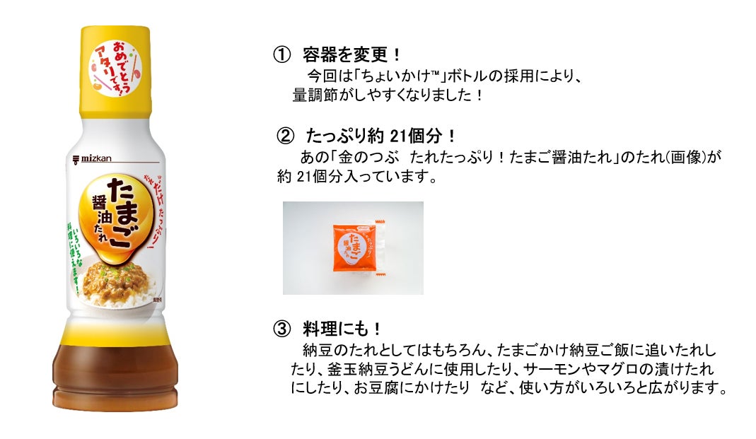 ~「たれ“だけ”たっぷり!たまご醤油たれ」は、前回から味わいと容器を見直し、更においしく!~