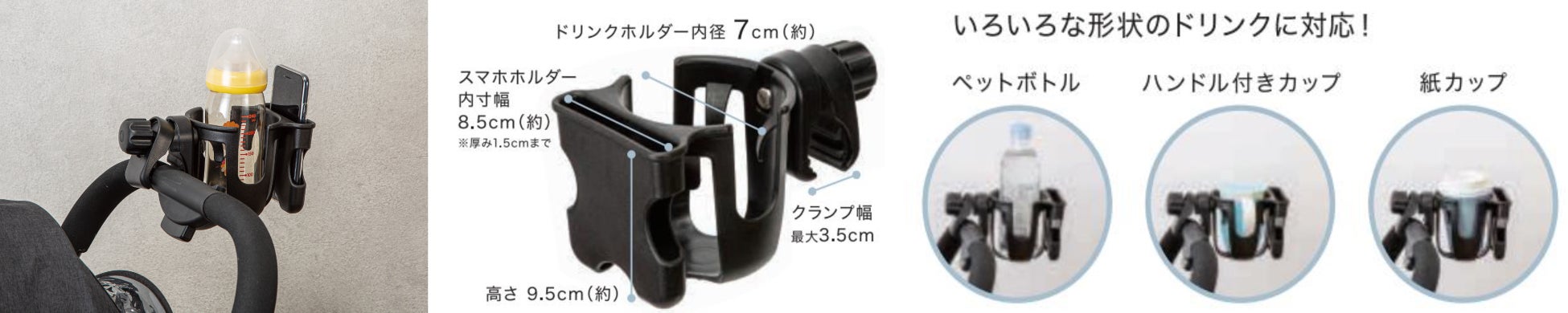 【商品名】ベビーカー用スマホ・ドリンクホルダー