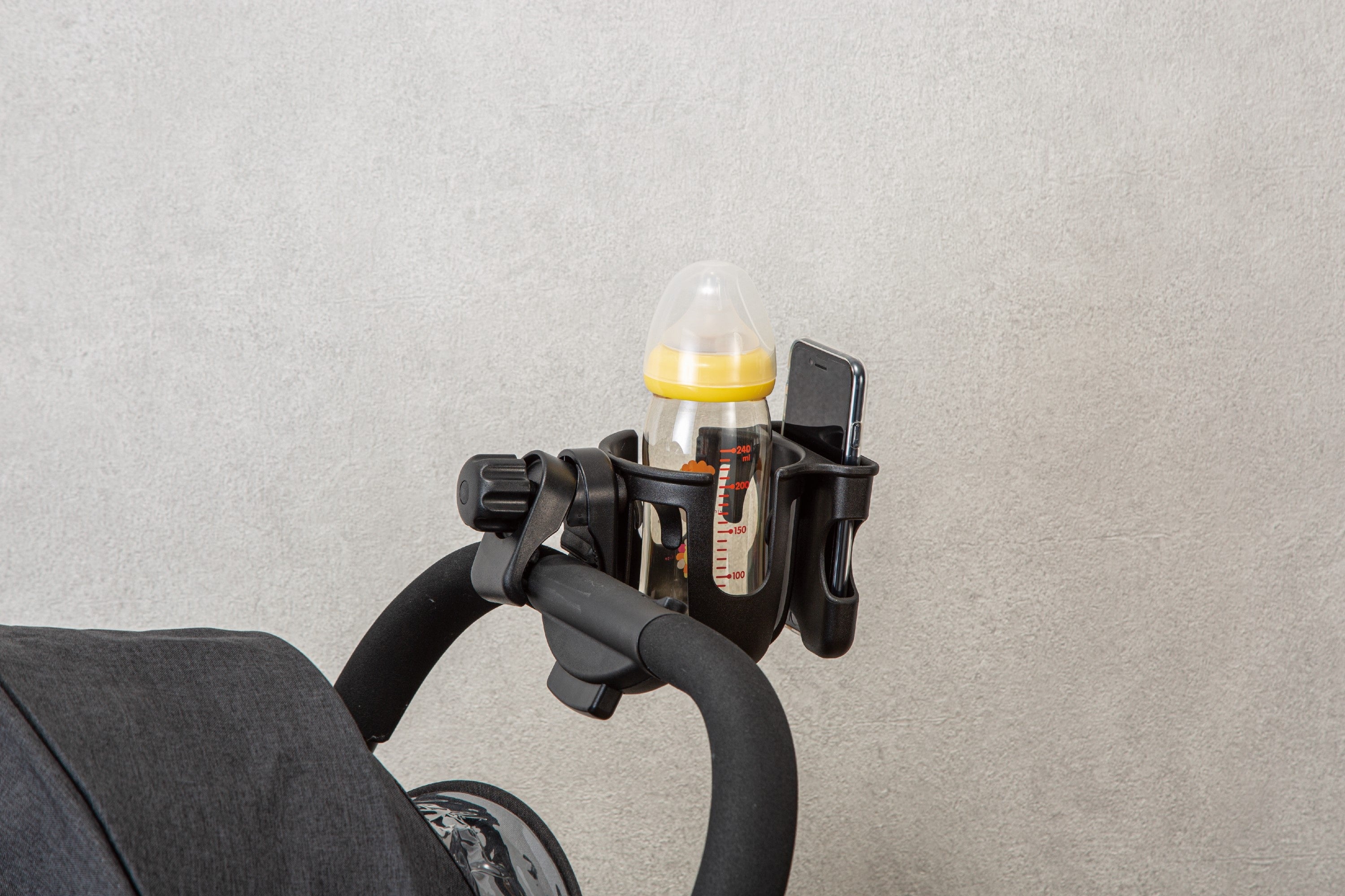 赤ちゃんとのお出掛けは荷物も多く、抱っこする時、ドリンクやスマホを置く場所に困るもの。ベビーカーに取り付けられるドリンクやスマホを置くホルダーがあれば便利です。ぜひお試しください。