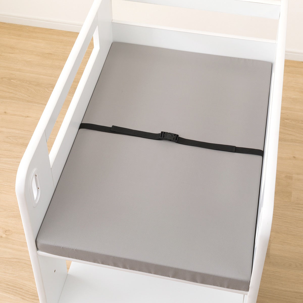 ②ベルト付きのため、安心安全。マットレスカバーは洗濯可能です。