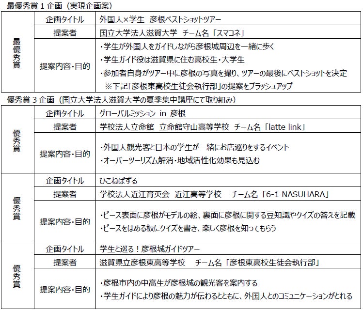 集し、過去最多となる598件もの応募がありました。学生たちに地域を元気にするアイデアを考えるきっかけ作りとして、彦根市内の高等学校を中心に取り組んでいただいています。