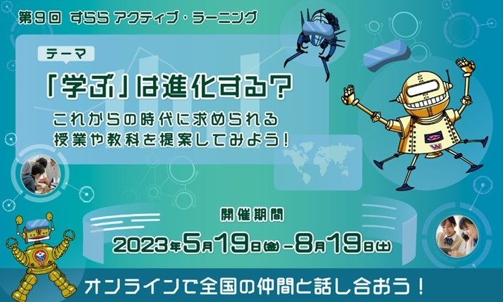 9回目の開催となる今回は「『学ぶ』は進化する?」をテーマに、これからの時代に求められる授業や教科を自由な発想で考え、提案してもらいます。イベント期間は約3カ月間に及び、その間参加者はすららネットの独自のチャットツールを用いたり、オンラインワークショップを通じたりなどして、地域・学年の垣根を超えて意見交換し、大きなスケールでの「探究プログラム」に取り組みます。イベントの終盤では、参加者がチームで作成したレポートを全国から募集して審査し、上位チームによる最終プレゼンテーション大会をオンラインで開催します。