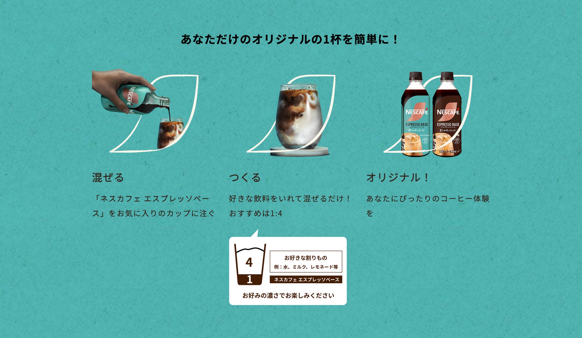【つくる】おすすめは「ネスカフェ エスプレッソベース」1:お好きな割りもの 4