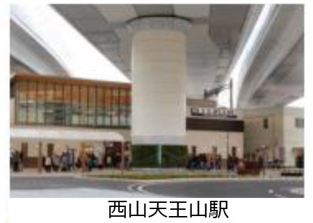 西山天王山駅は、高速道路との結節機能をもち、駅と一体でパーク&ライドの駐車場や高速バスの停留所を設けるなど、利便性と環境負荷低減の両立を実現しています。