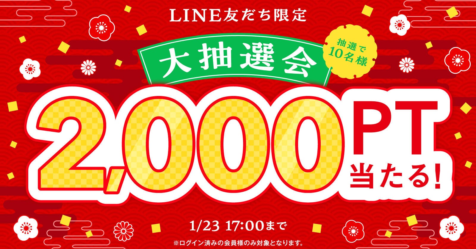 LINE友だち限定で抽選で10名様に2,000ポイントが当たる大抽選会を開催!当たったポイントでお得に漫画を手に入れよう!