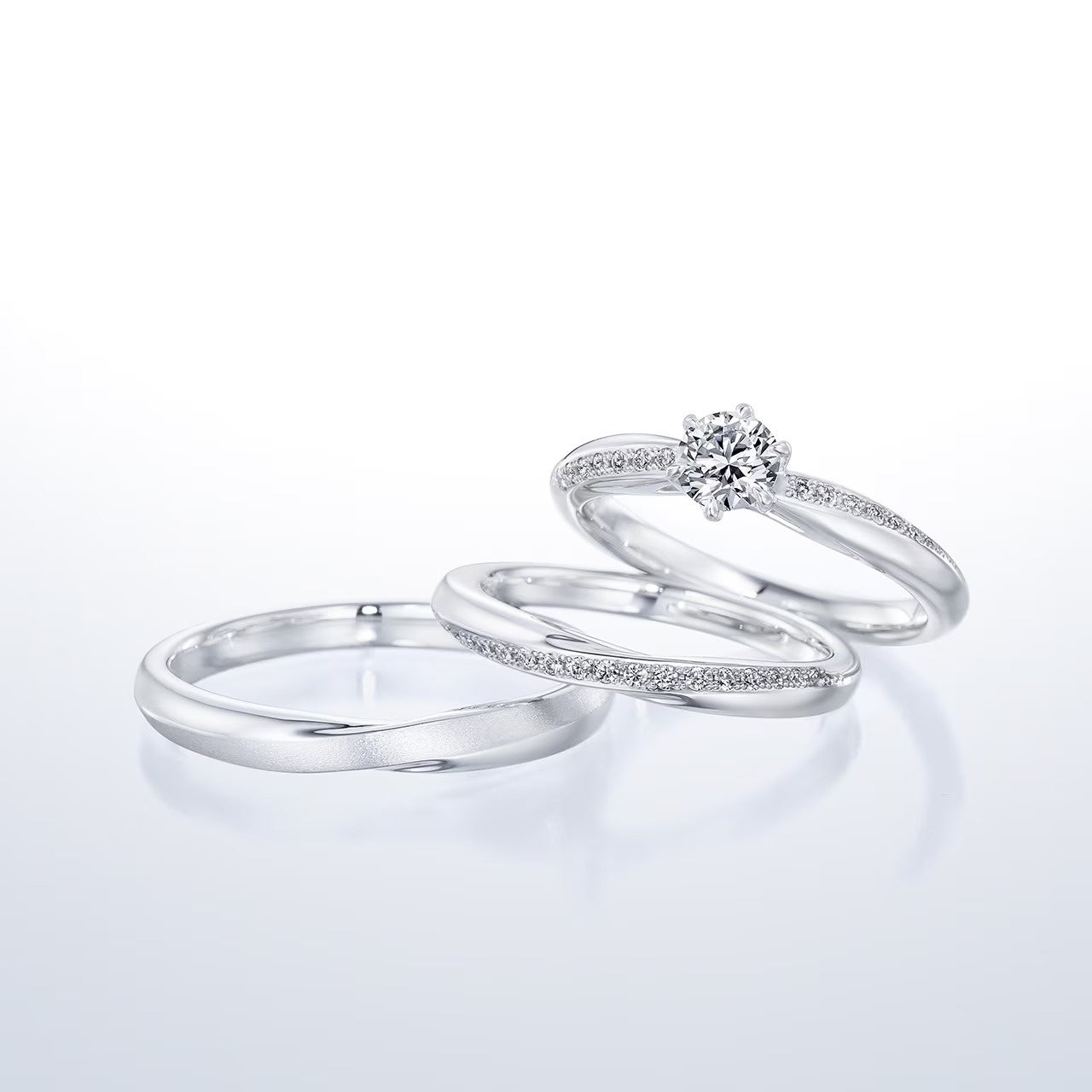 婚約指輪(エンゲージリング)と結婚指輪(マリッジリング)を重ねてつける「セットリング」も業界の先駆けとなっています。なめらかな着用感、サイドからみた美しさも細やかな手仕事がなすさらなる特徴です。