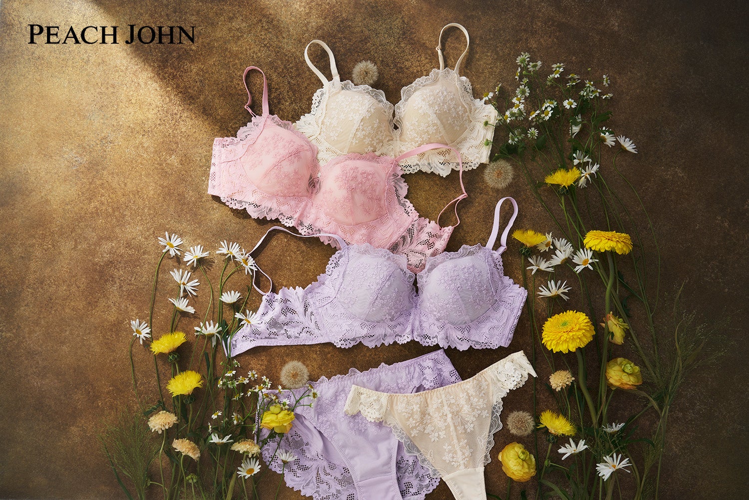 日常のあらゆるシーンで、どんなコンディションでもバストにピタっとフィットして、もちっと包まれる大人気の新触感ノンワイヤー「いつでもジャストブラ」。新作は、カップ部分にふわっとしたウーリー糸で刺しゅうした綿毛柄レースを配し、清楚でフェミニンなデザインを春らしいカラーで展開します。