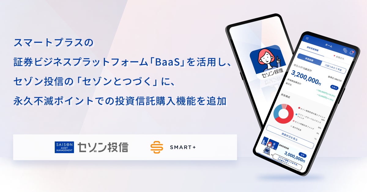 スマートプラスの証券ビジネスプラットフォーム「BaaS」を活用し、セゾン投信の「セゾンとつづく」に、永久不滅ポイントでの投資信託購入機能を追加