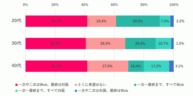 ★希望の面接スタイル、20代は「すべてWeb」が2位、「すべて対面」の回答率は40代の半分以下