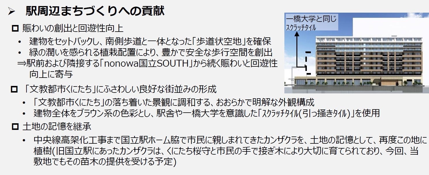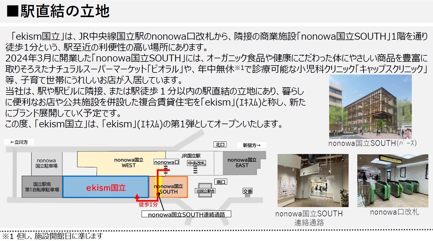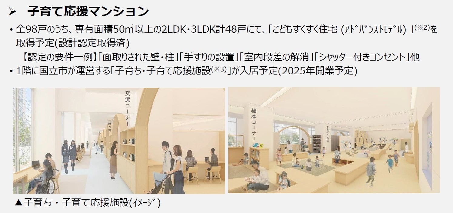 同じJRグループの商業施設「nonowa国立SOUTH(2024年3月27日開業)に隣接し、1階には国立市の「子育ち・子育て応援施設」が入居予定です。