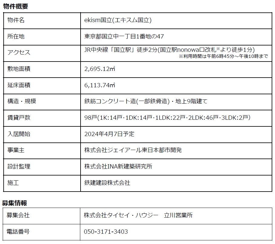 2024年4月7日より「ekism国立(エキスム国立)」入居開始