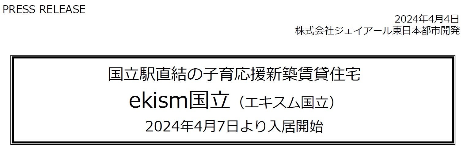 株式会社ジェイアール東日本都市開発(東京都渋谷区/代表取締役社長 根本英紀)は、新たな複合賃貸住宅「ekism国立」(エキスム国立)を開発、2024年4月7日より開業・入居開始することをお知らせいたします。