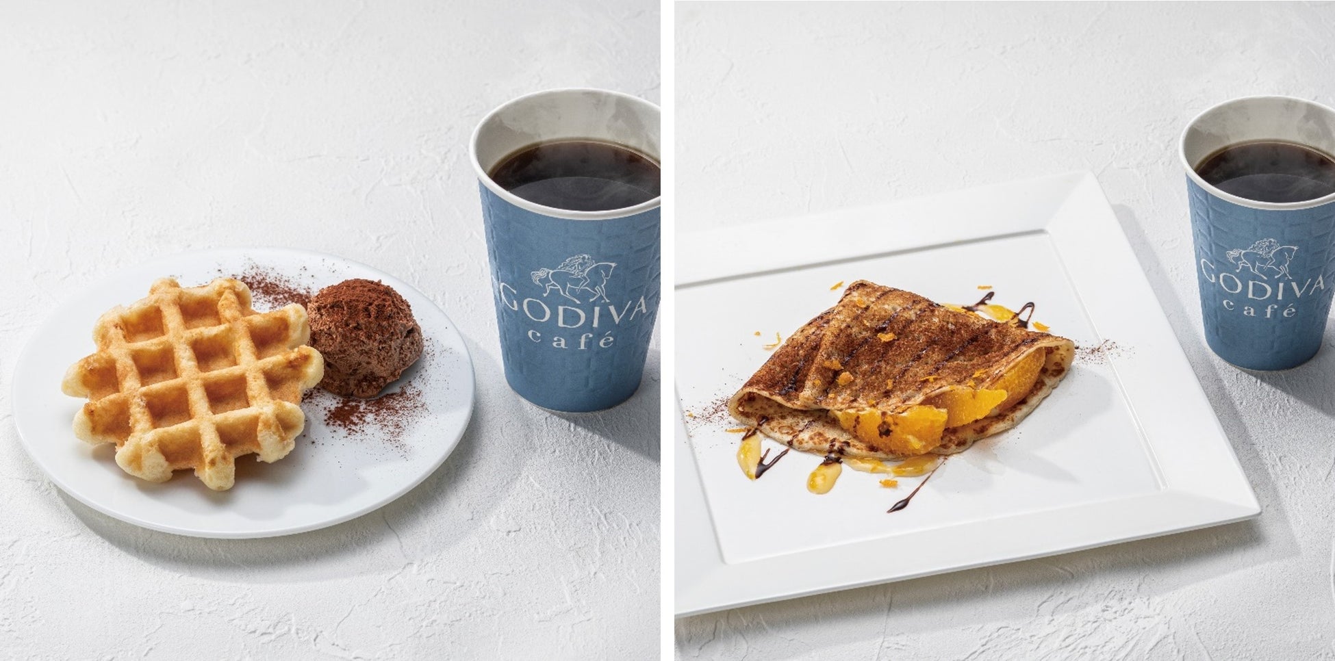 ベルギーワッフル、クレープを選べるモーニング限定セットが新登場「GODIVA caféモーニングセット」