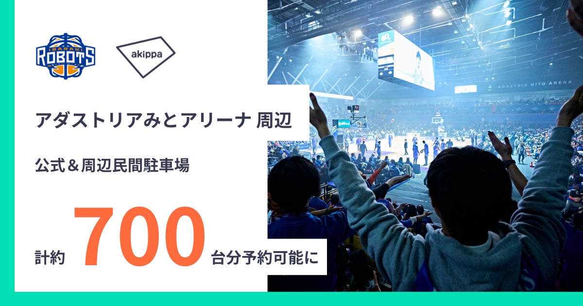 駐車場予約アプリ「アキッパ(akippa)」(以下、アキッパ)を運営するakippa株式会社(代表取締役社長 CEO:金谷元気)は、B.LEAGUE(B1)所属のプロバスケットクラブ「茨城ロボッツ」を運営する株式会社茨城ロボッツ・スポーツエンターテインメント(代表取締役社長:西村大介)と連携し、ホームアリーナである「アダストリアみとアリーナ」周辺に試合時に稼働していない民間駐車場を活用し、新たに200台分以上の予約可能な駐車場を確保しました。これによりアリーナ周辺ではおよそ700台分の駐車場が予約可能となりました。