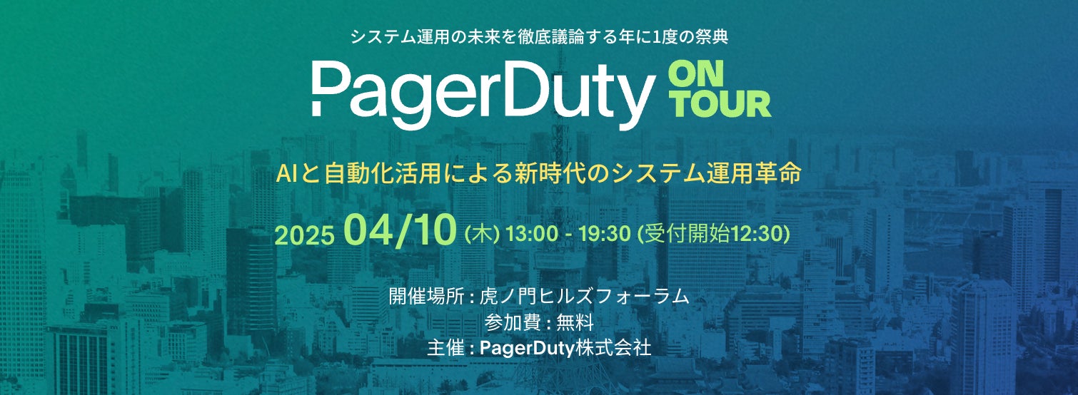 PagerDuty on Tourは、PagerDutyを活用している企業ユーザーが登壇し、インシデント対応に関する課題を解決するためのAIや自動化を活用したIT運用のベストプラクティス、さまざまな業界におけるテクノロジーリーダーによる事例を紹介する対面イベントです。