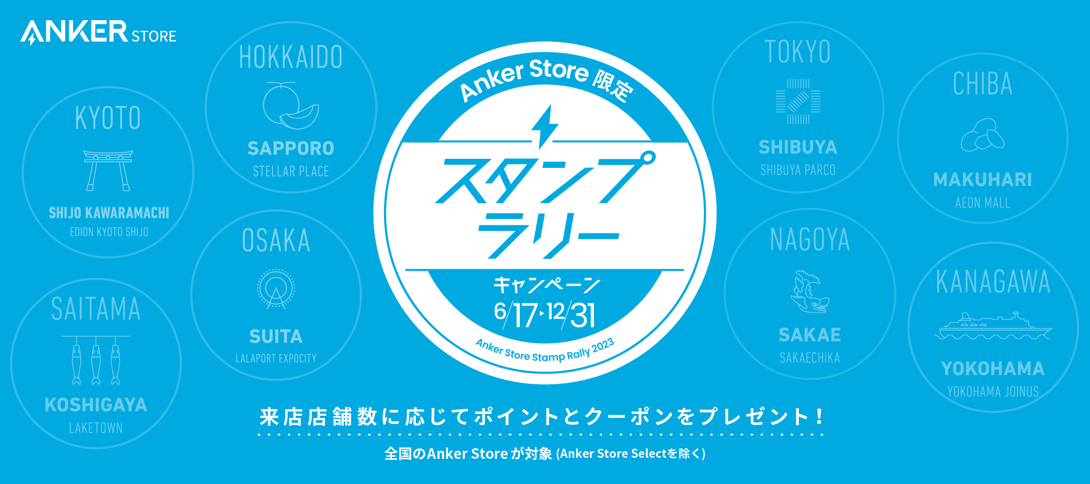 アンカー・ジャパン株式会社の子会社として常設店Anker Store / Anker Store Selectの運営事業を担うアンカー・ストア株式会社(本社:東京都千代田区、代表取締役CEO:猿渡歩)は、直営店「Anker Store」の展開5周年を記念して全国20店舗のAnker Storeにて「Anker Store スタンプラリー」を2023年6月17日(土)より実施致します。
