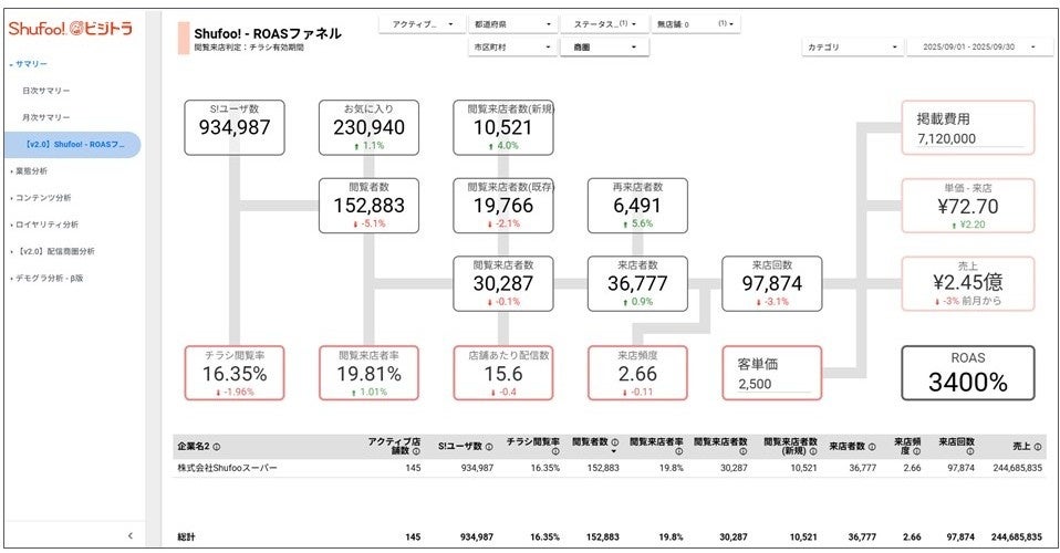 レポーティングサービス「Shufoo!ビジトラ」チラシの効果をさらに深堀りROASファネル・再来店分析・商圏分析の3機能を新たに追加
