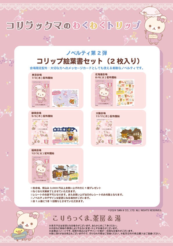 ※コリラックマのわくわくトリップ北海道、静岡、大阪、福岡会場での発売日は、各会期初日の発売となります。