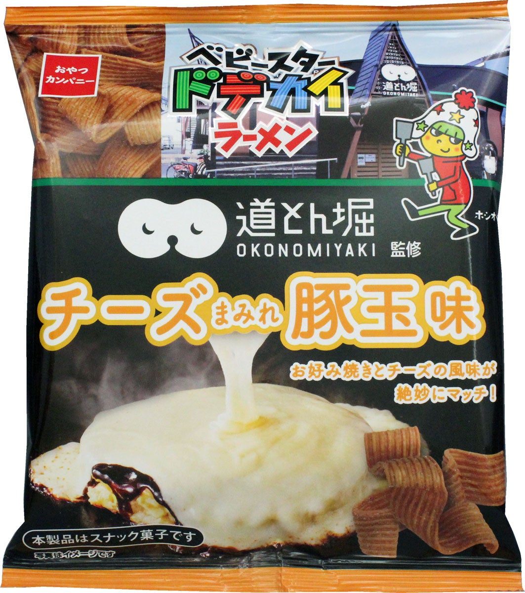 ベビースターで楽しむ”鉄板”の味!『お好み焼 道とん堀』監修<ベビースタードデカイラーメン(チーズまみれ豚玉味)><ベビースタードデカイ焼そば(塩やきそば味)>