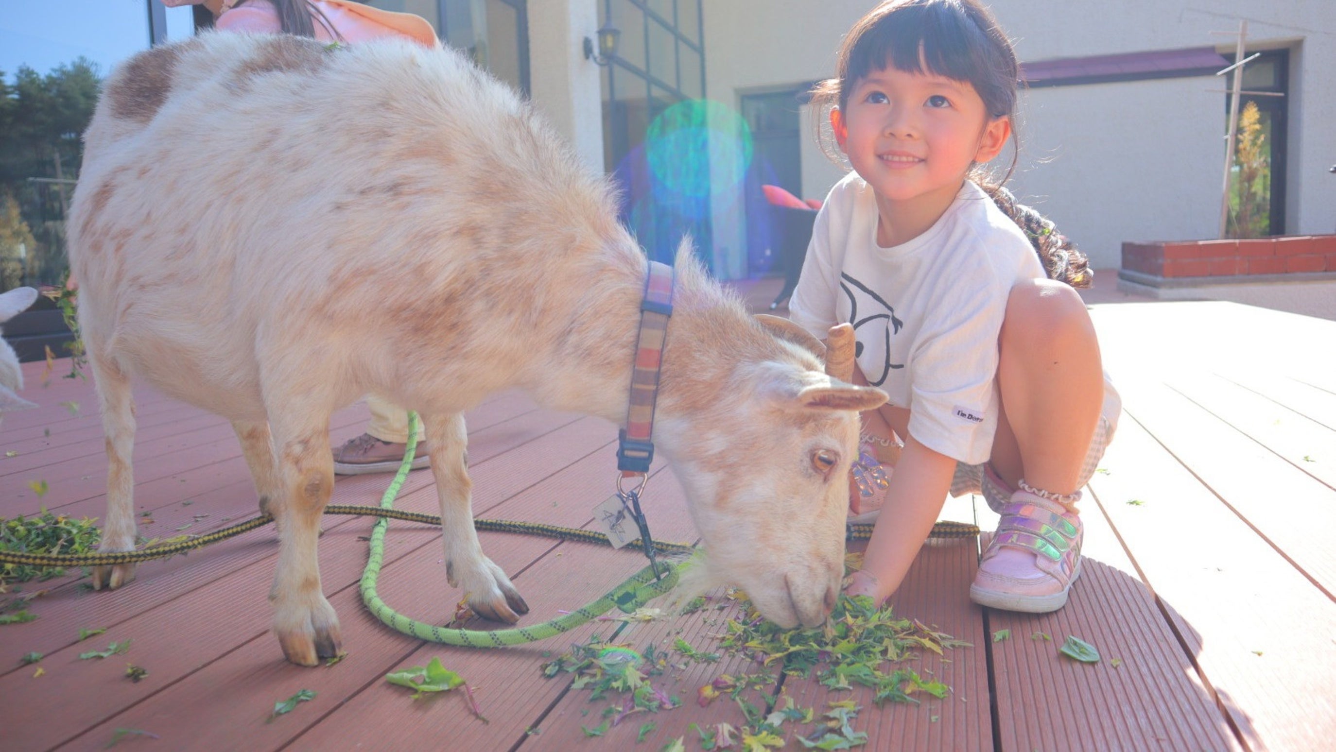 1位に輝いた「1000Mのおもてなし 八ヶ岳 ホテル風か」は、標高1,000メートルの高原に位置する、八ヶ岳の自然に囲まれたリゾートホテルです。「オールインクルーシブ」のサービスには、子どもが楽しめるアクティビティやサービスが充実しており、ヤギの親子との散歩・餌やり体験や、大きな焚き火での焼きマシュマロ作り、チェックイン後のウェルカム窯焼きピザや飲み物、夜の星空観察などを自由に楽しむことができます。キッズルームでは、おもちゃや絵本、遊具の用意に加えて、ビーズネックレス作り体験や、松ぼっくりや紙粘土を用いた工作体験も提供しています。また、駄菓子がもらえる館内での宝さがしイベントや、湯上り処で楽しめるアイスキャンディーも家族連れに人気です。さらに夕食の際には、大人向けに山梨県産ワインを中心とした約50種類の飲み放題ドリンクを、子ども向けには玩具を提供するなど、年齢を問わず満足できるサービスが充実しています。