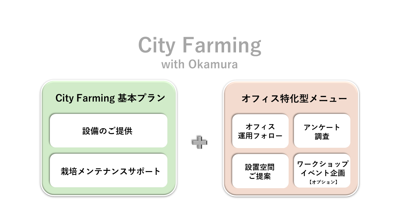この度、日常で 多くの時間を過ごすオフィス空間に広く展開していくことを目指し、オフィスにおいて様々な働く場の提案を行ってきたオカムラと販売提携契約を2024年9月1日に締結し、「City Farming with Okamura」を提供開始します。