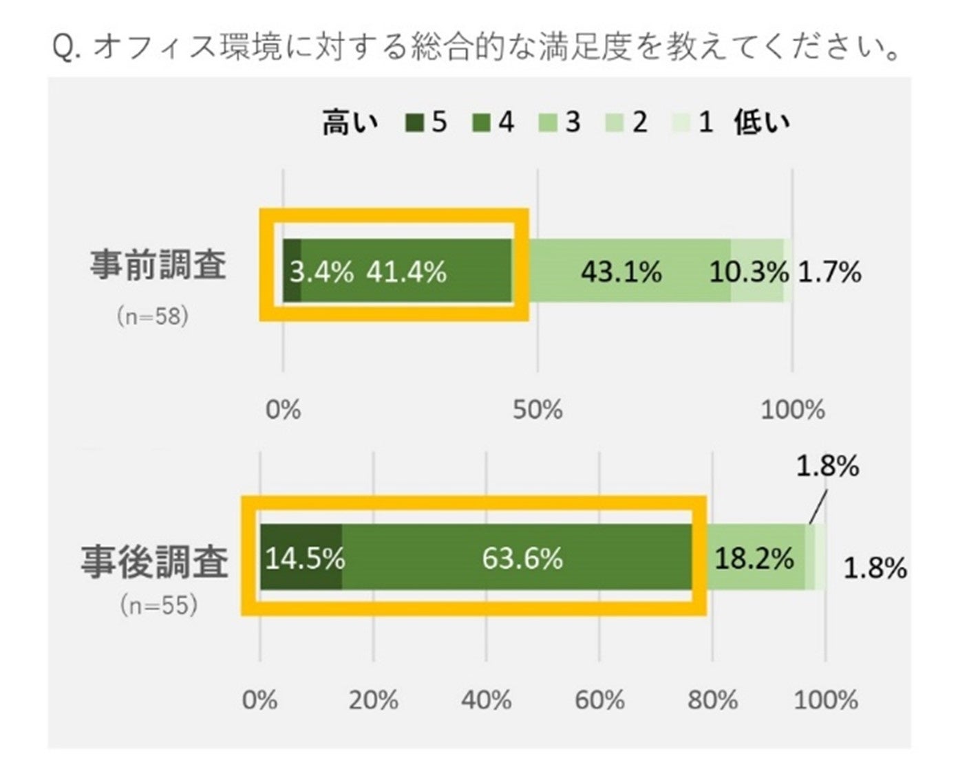 2023年8月より試験導入している「CO-EN LABO」では、実際に導入前後の社員アンケートによる効果検証を行い、以下の効果を実証しました。