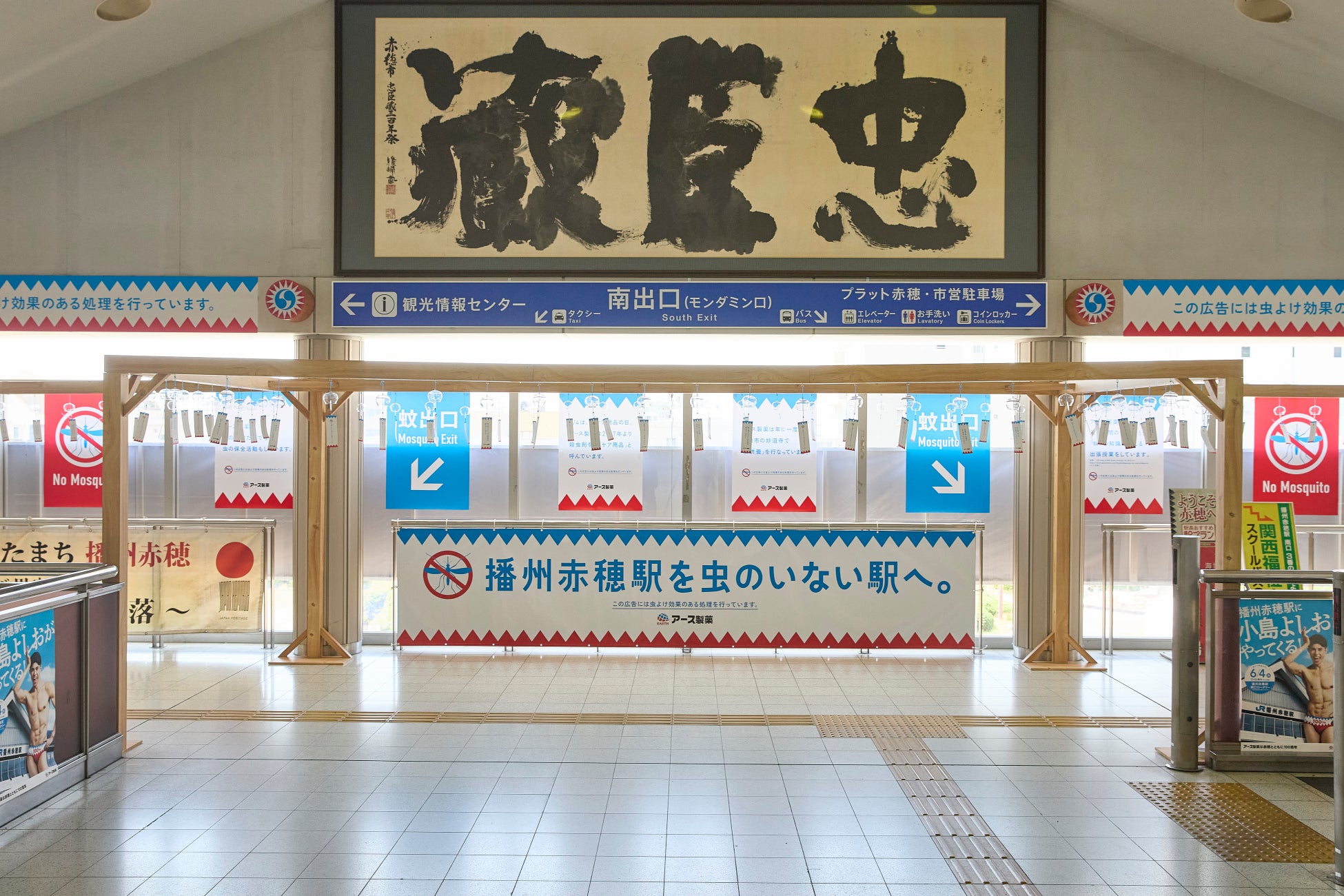 ・概要:JR播州赤穂駅の駅舎内にて虫よけ効果のある処理を施したポスターやタペストリーを