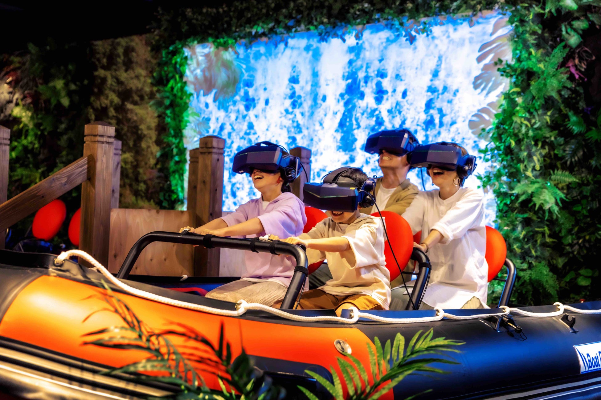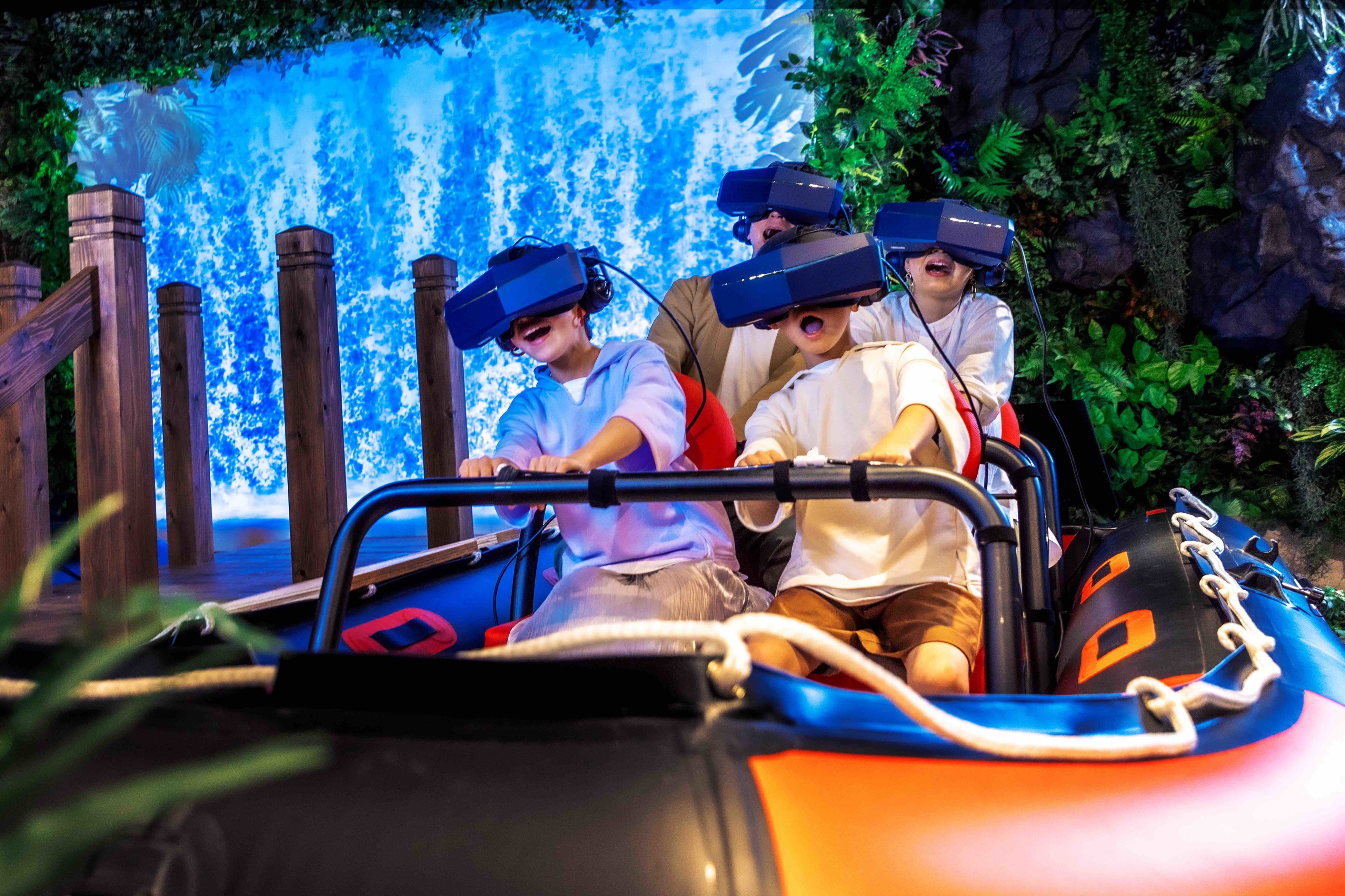 恐竜が棲む古代ジャングルの激流を下る、「激流ラフティング」 がおすすめ。激しく動くシートに水しぶきや風の演出が加わり臨場感も抜群!