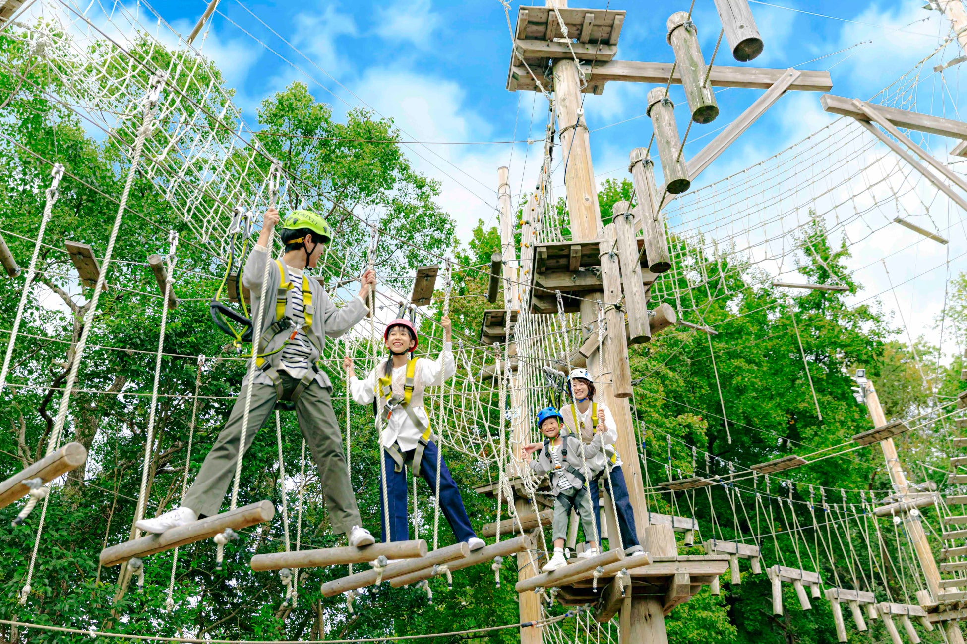 最高9mの高さに張り巡らされた様々なエレメント(障害)にチャレンジしていくスリル満点のアスレチック。