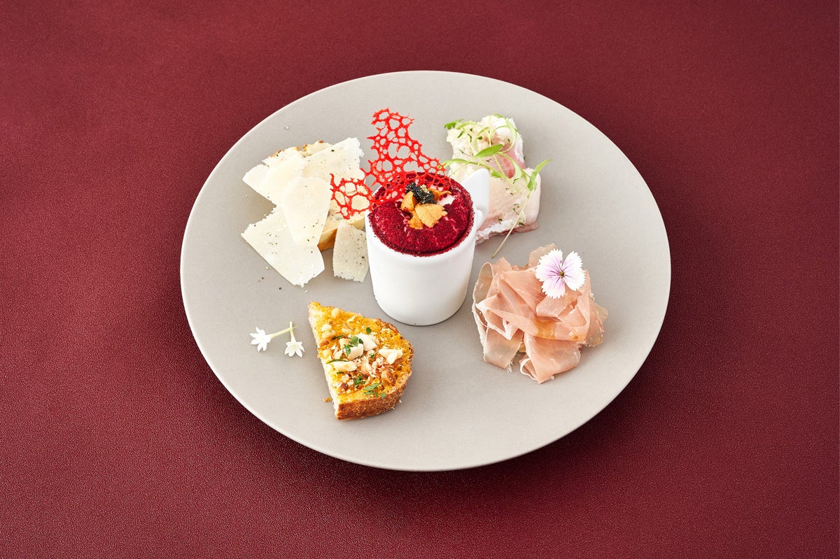 淡路島産雲丹とキャビア ビーツとジャガイモのエスプーマ
