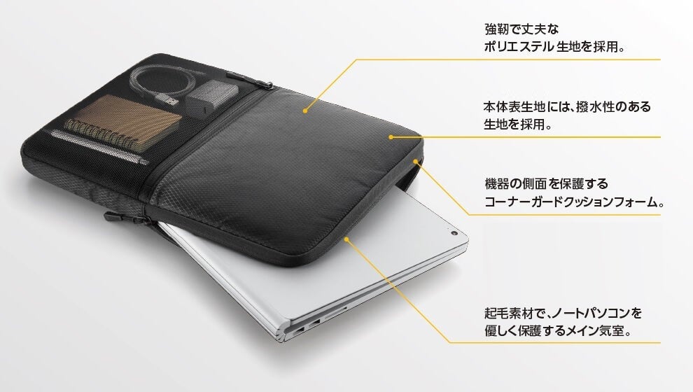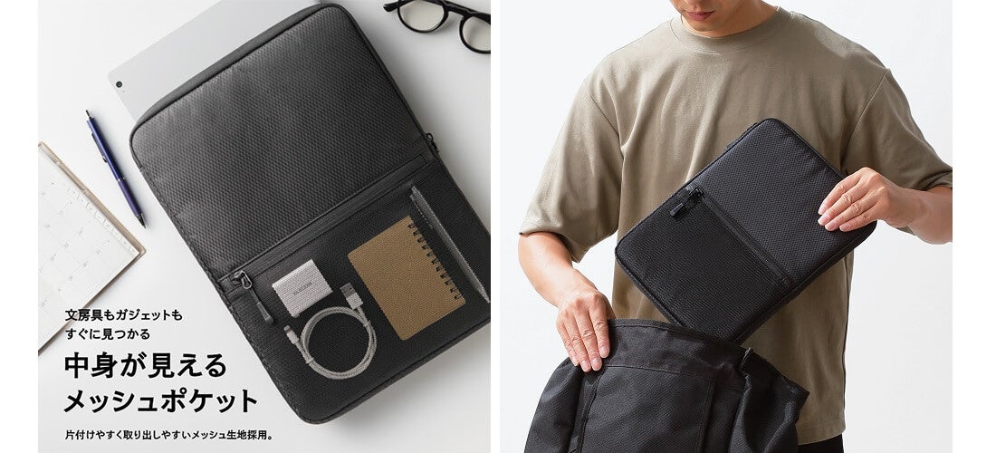 必要な時に必要なモノが見つからない問題を解決!収納物がひと目でわかるメッシュポケットを備えたノートパソコンケース 3サイズを新発売