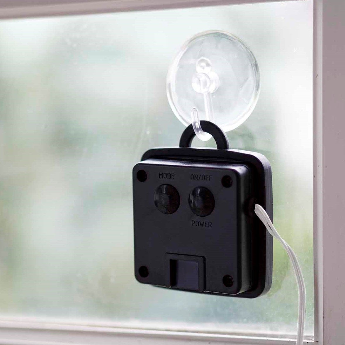 暗くなったら自動で点灯する機能がついているため、設置後は電源をつける手間がかかりません。ソーラーパネル部にはフックがついてるため、別途吸盤などをご用意いただくことで窓側に設置することができ、日中に充電可能です。暗くなったら点灯するので、窓辺に設置することで手軽な防犯対策にもなります。