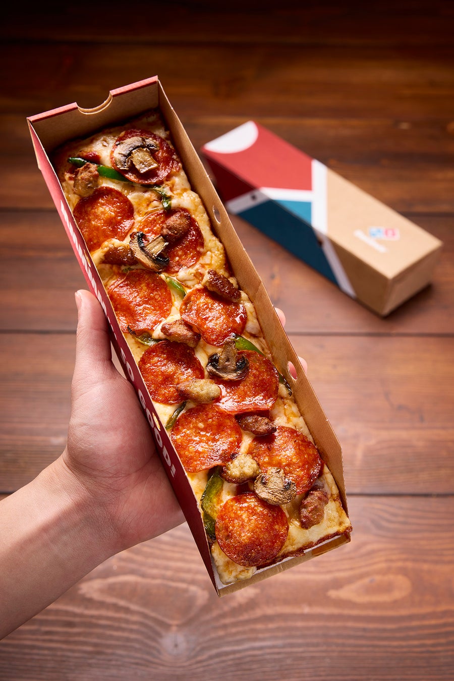 ドミノ・ピザ、片手で気軽に楽しめる新感覚のスクエアピザ「チーズとろけるワンハンドミノ」新発売