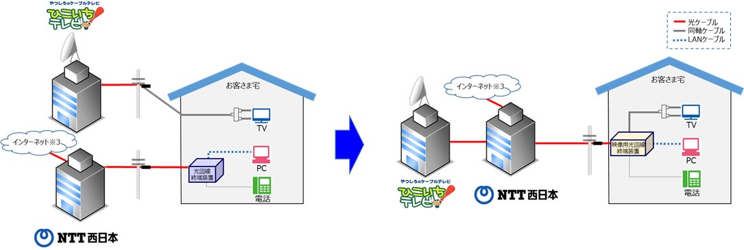 一方、NTT西日本は、テレビやつしろの既存の同軸ネットワークの光化を円滑に進めるために、テレビやつしろに対して、ネットワーク切り替え時の様々な技術的課題の解決に向けた支援等を実施してまいります。