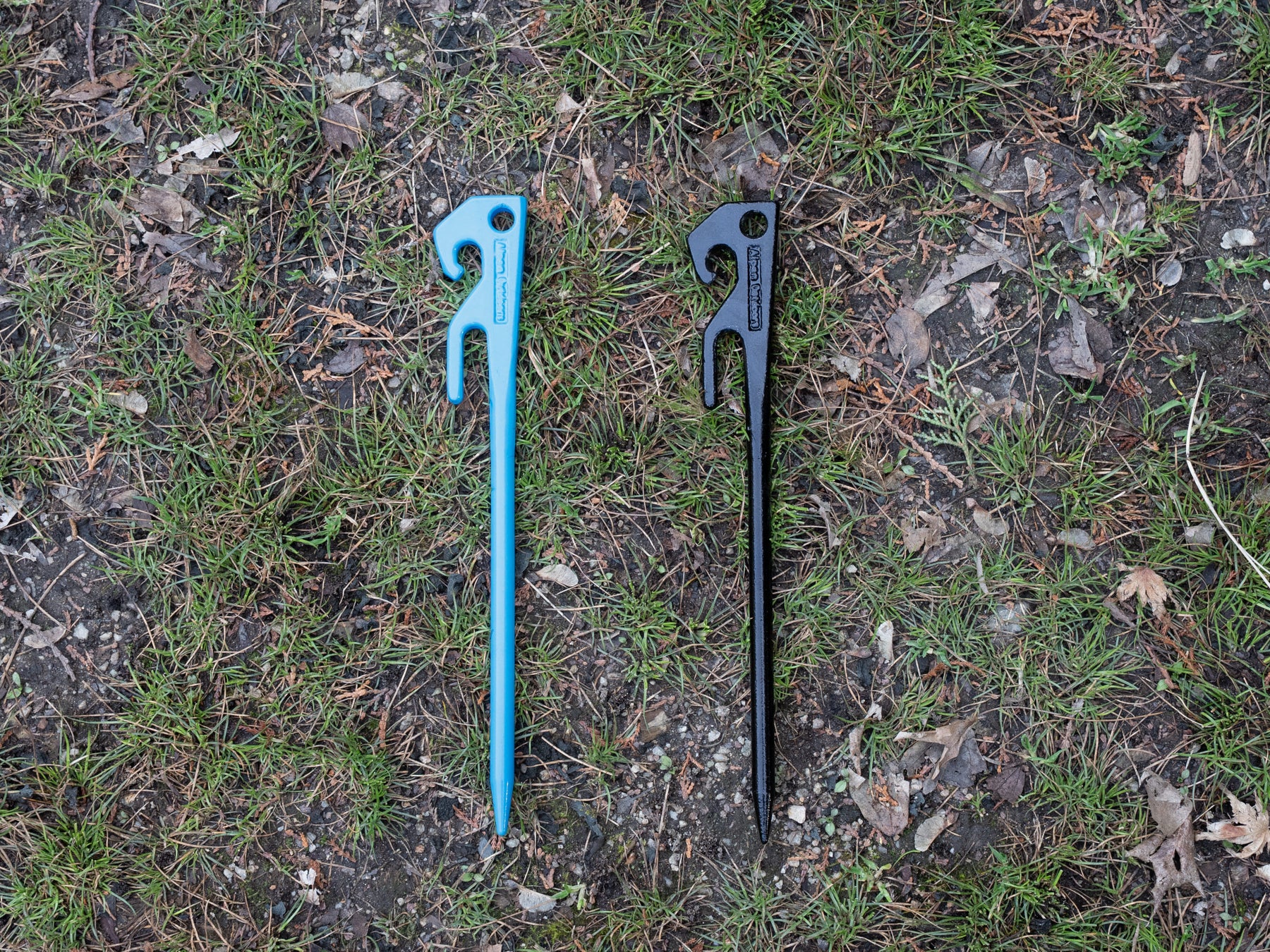 定番のブラックカラーに限定色のブルーが加わり、「鍛造ヘッドペグ25」が2色展開になります。限定カラーは、アルペンの旗艦店カラーからインスパイアされた鮮やかなブルーカラーです。「ペグが回りながら抜ける」という課題を独自のダブルヘッド構造で解決した、鍛造ヘッドのスチールペグで、テント本体のペグダウンに最適化した25cmのサイズが、抜けにくさと手軽さを両立します。