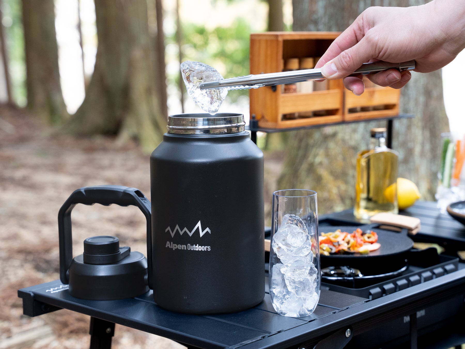 夏のキャンプや炭酸飲料を飲みたいキャンパーにおすすめな、85mmの広口設計で大きな氷も持ち運べるアイスコンテナです。外気温35度で、3.8Lは32時間以上、2.0Lは約24時間以上、氷を維持する保冷力。3.8Lはファミリーキャンプの方、2.0Lはソロ・デュオキャンプの方におすすめです。