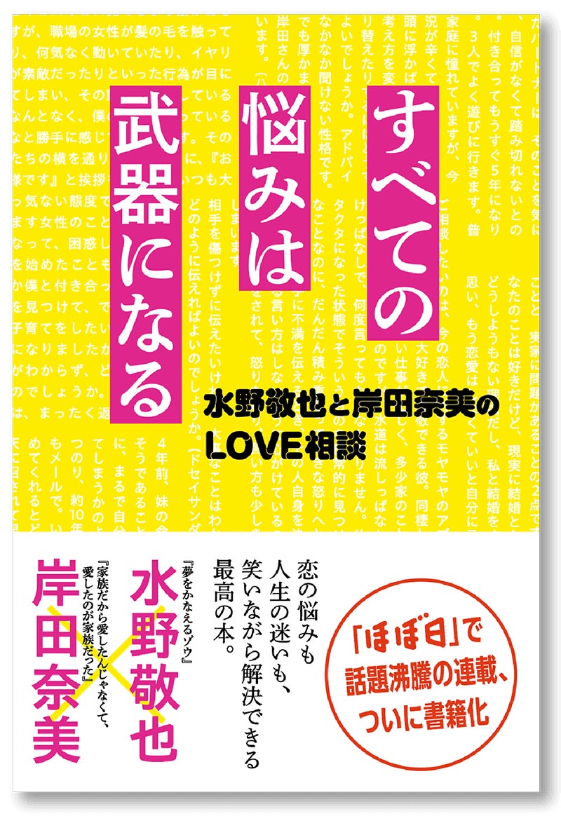「ほぼ日」で話題沸騰の音声番組がついに書籍化『すべての悩みは武器になる~水野敬也と岸田奈美のLOVE相談~』