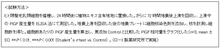 ◆ 毛髪の成長に関わるPlGF産生促進作用を持つ植物エキス(オウバク・チンピ)を発見
