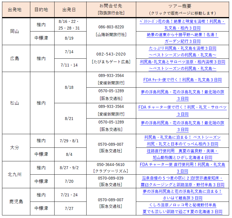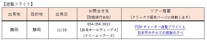 現在募集中の、FDAチャーター便を利用した旅行ツアーのご案内です。